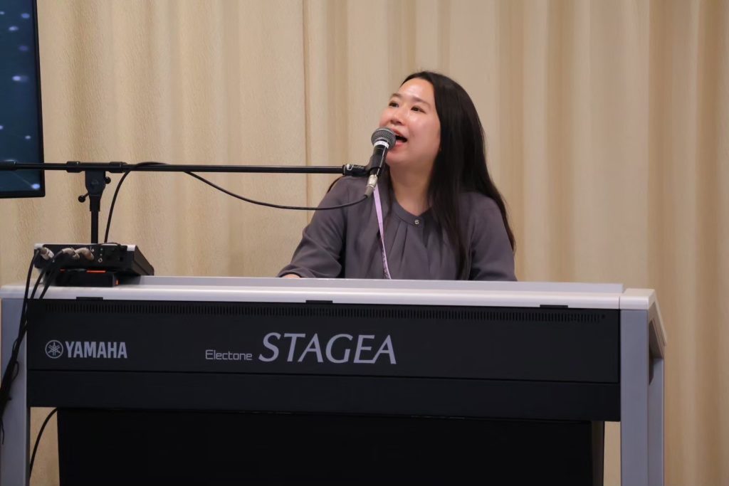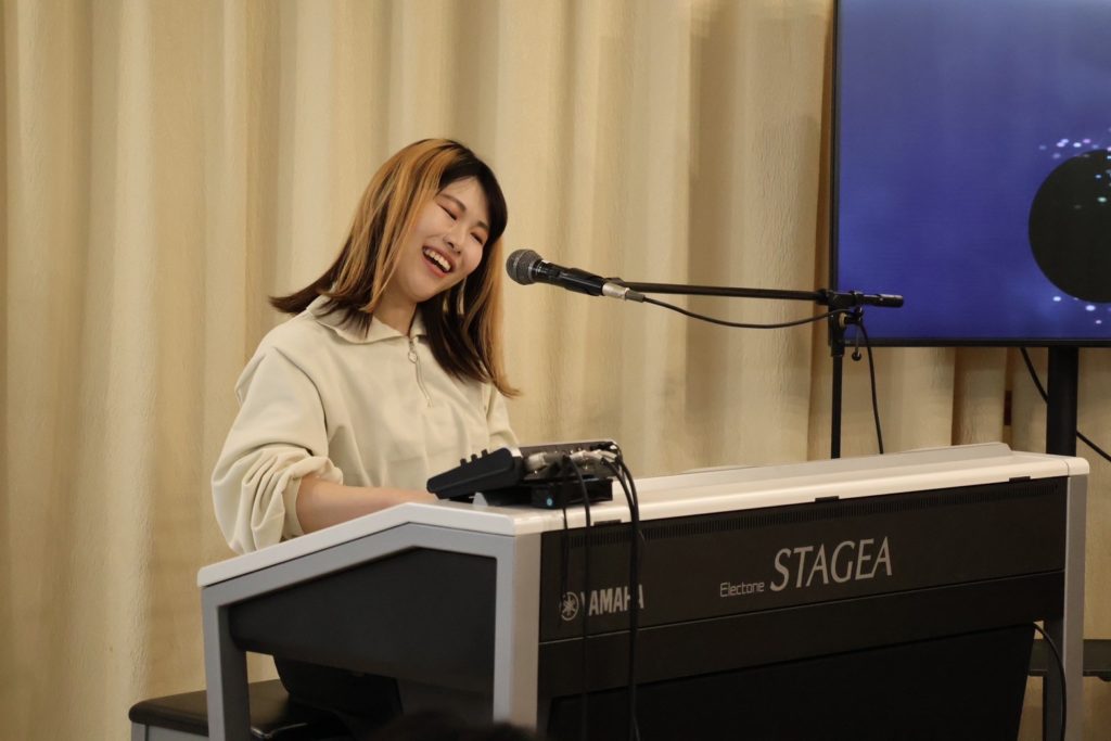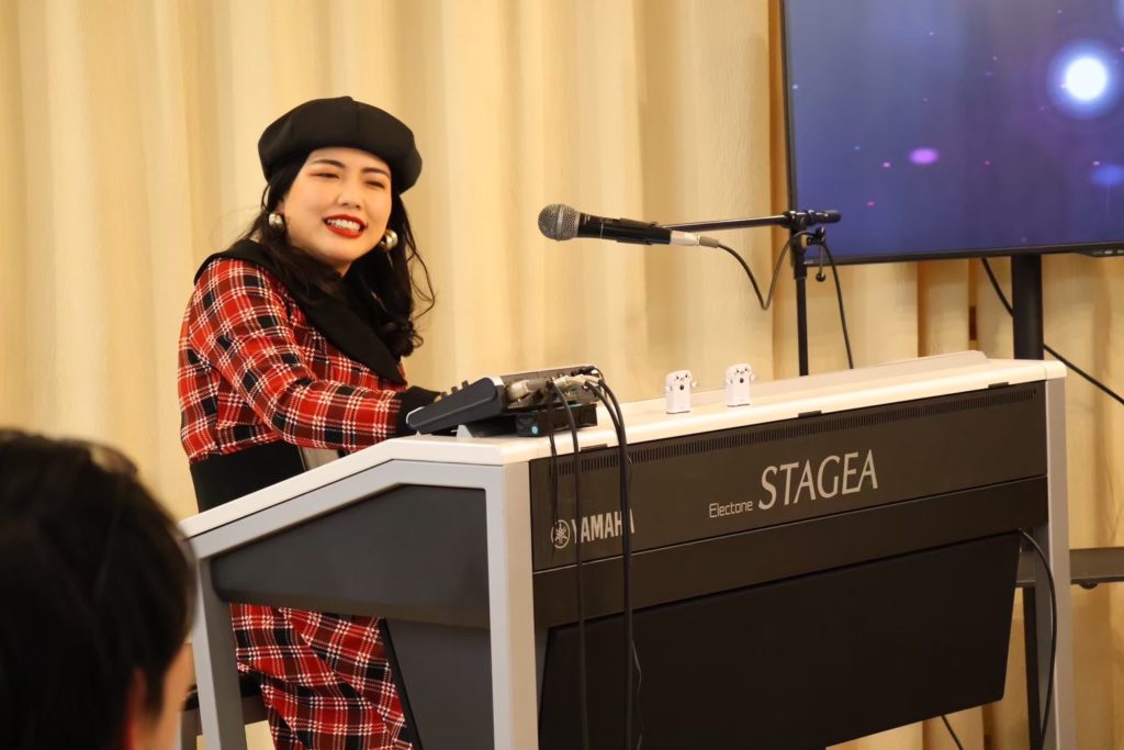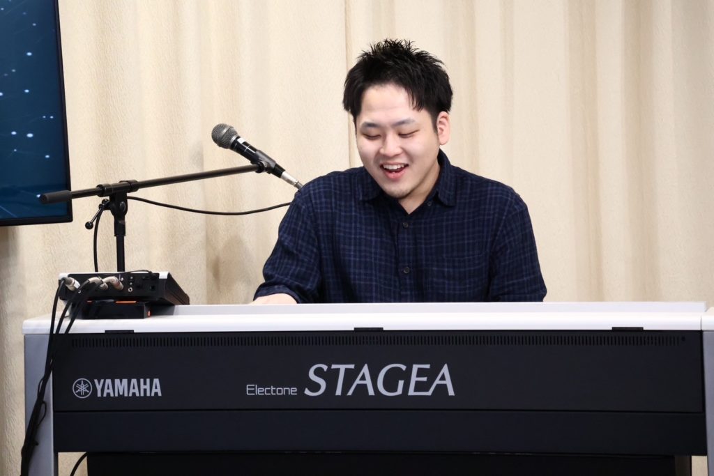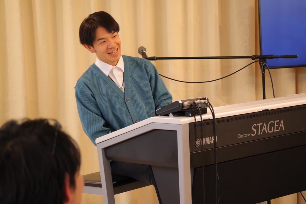 まずは会場全員で『ド!レ!ミ!』と声を出し、そこから客席のお父さんがエレクトーンに挑戦。鍵盤未経験とは思えないグルーヴ感に、演奏者も客席も思わず笑顔になり、音楽が会場全体を一つにしていく瞬間となりました。