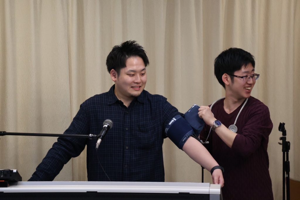 さらに会場を沸かせたのが、血圧計でテンポを決める「ドレミのうた」。聴診器と血圧計が登場する、ライブの途中とは思えないシュールな光景に会場がざわめきます。測定された血圧の数値で演奏が始まり、最後は最速テンポへ。笑いと驚きが入り混じる中、音楽の自由さと遊び心を存分に味わう時間となりました。