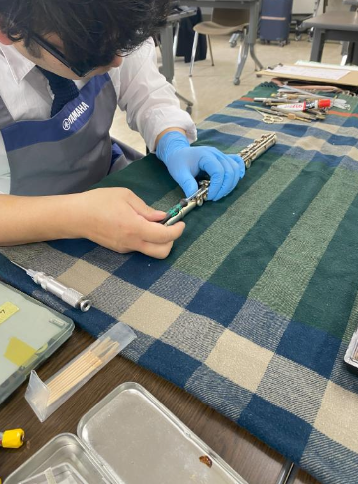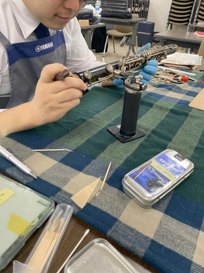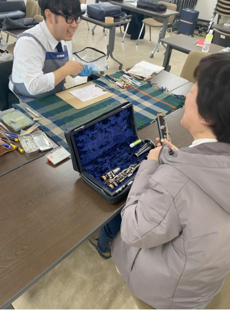 メンテナンスは 30 分程で完了。実際に演奏して音を確認してもらった所、「困っていたキイ部分が直った!」と笑顔で話してくれました。これで、来週のアンサンブルコンテストにも出場する!と、大会への意気込みも教えて頂きました。