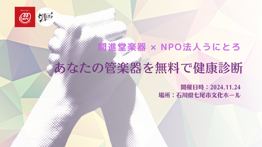 2024年11月24日、石川県七尾市にてNPO法人うにとろ主催・開進堂楽器共催による、管楽器の無料健康診断事業を開催しました。